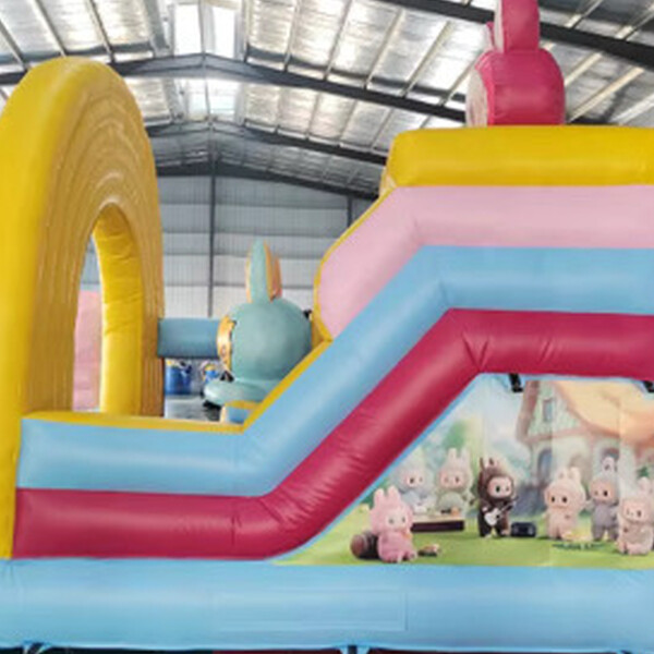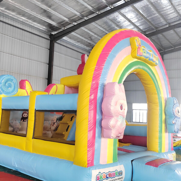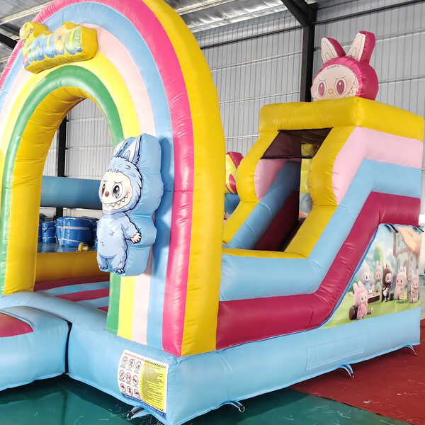 Barevný nafukovací hrad Labubu s duhovým motivem přináší dětem spoustu radosti, pohybu a smíchu! Díky veselému designu s duhou a roztomilými postavičkami si děti užijí skákání, prolézání i skluzavku v jednom. Tato atrakce je ideální pro dětské oslavy, rodinné dny, firemní akce i obecní slavnosti a okamžitě přitáhne pozornost všech malých návštěvníků. 🌈🎉