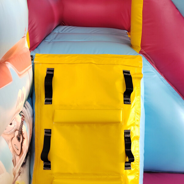 Skákací hrad je vybaven oblíbenou skluzavkou, přičemž její horní část je zajištěna ochrannou sítí, stejně jako všechny stěny hradu. To vše doplňuje prostorná skákací plocha opatřená protisluneční clonou, která dokáže ochránit i před lehkým letním deštíkem.